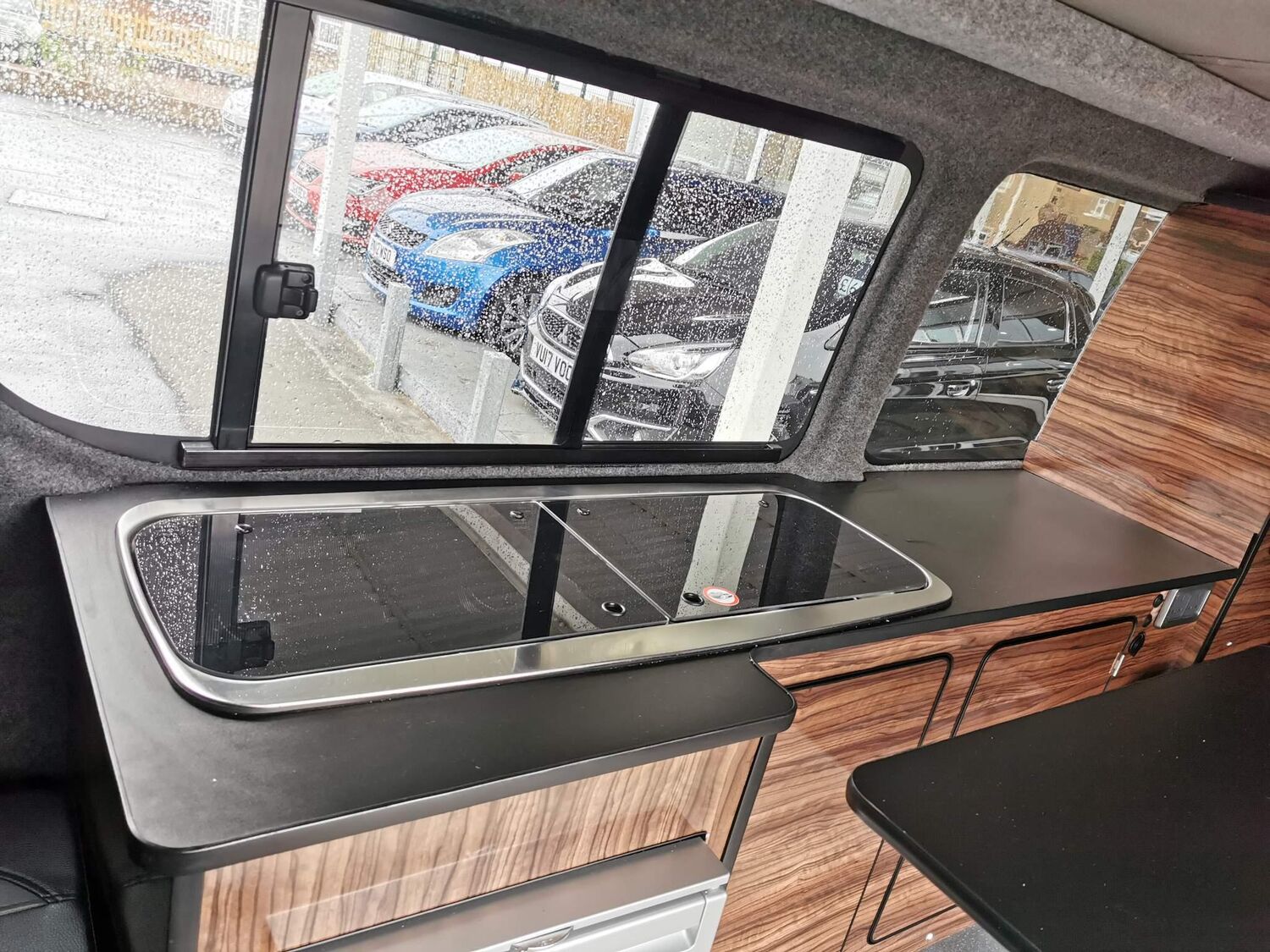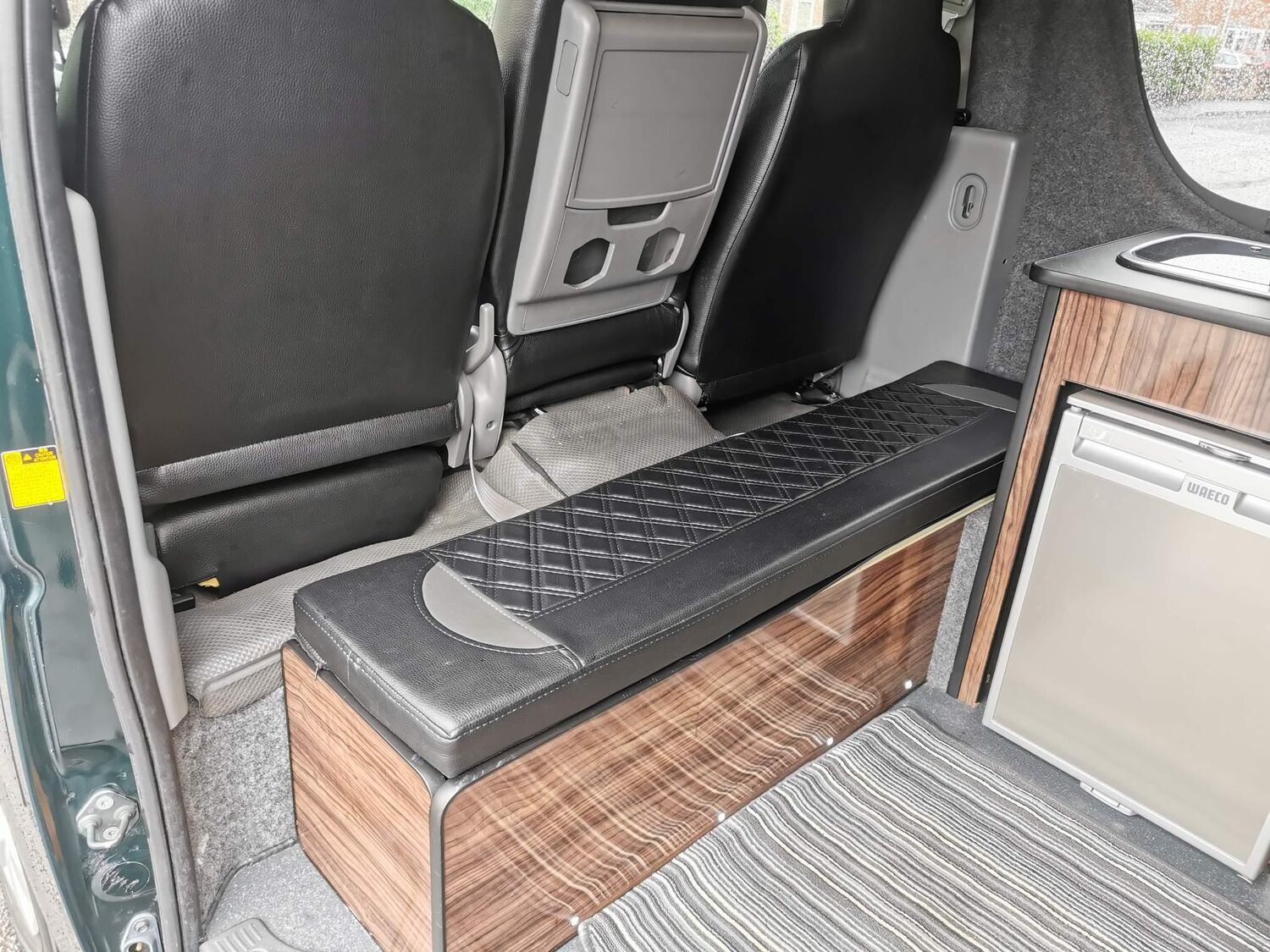 The interior of the van is in excellent condition and finished to a high level. The van has a dual gas hob, fridge, running water and spotlights under the side cupboards and in the roof. The centre table is removable and allows the rock n' roll bed to be brought down and enjoyed. The seating and bed is also made of nicely padded, leather finished cushioning and the rock n' roll bed also contains 2x seatbelts for passengers while travelling and includes 2x 3Pin plug sockets and multiple USB and 12v sockets around the van.